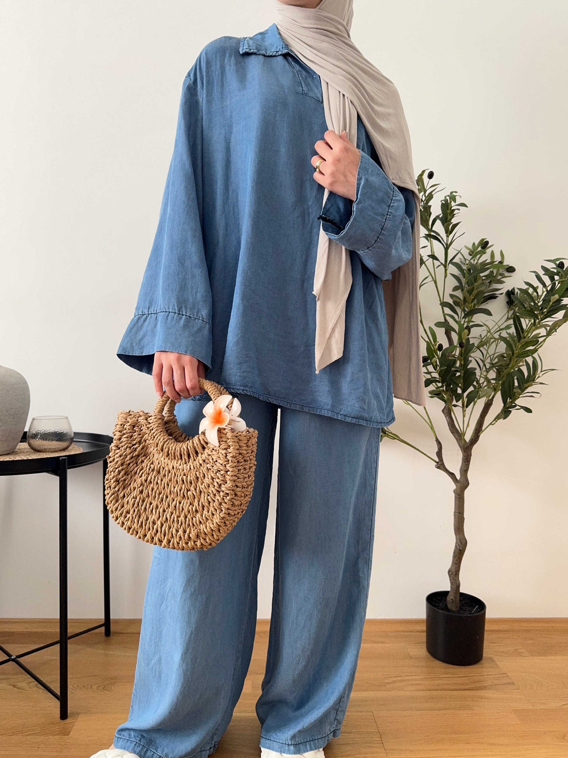 Denim Zweiteiler dunkel
